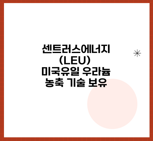 - 2024년 11월, 러시아 정부가 TENEX사의 미국 수출 일반 라이선스를 취소함에 따라, 센트러스의 LEU 공급에 일부 차질이 예상됩니다. 이에 대응하여 센트러스는 미국 내 생산 능력 확대에 주력하고 있습니다.
