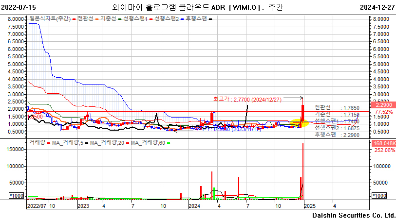 - 2024년 12월 27일, WiMi의 주가가 전일 대비 77.52% 상승하여 $2.29로 마감되었습니다