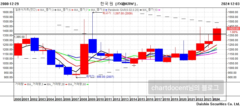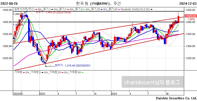 에도 이미 1400원이었기 때문에, 추세가 바뀐건