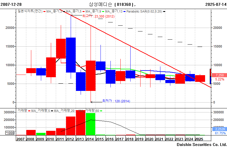 - 삼성메디슨은 1차적으로 일봉상 7550원 안착이 중요하며, 1차 가격이 안착하면 23년 8월 고점인 8500원까지 상승 가능합니다.