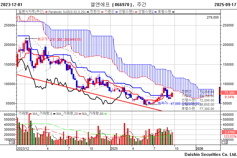 엘앤에프는 위의 주봉을 보세요. 과연 어떤 선을 기준