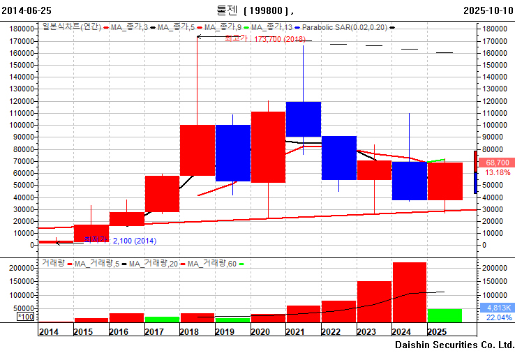 이 시작되고 있습니다. 하락추세선은 당연히 24년에 그어진 추세선이라서 미리 예측 할 수 있었고, 3만원에서 8만원 사이가 박스권으로 형성되어 있는데, 박스권을 돌파하면 좋은 시세 흐름이 계속 진행될 가능성이 있습니다.