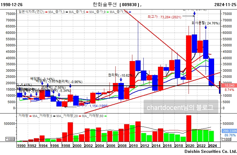 한화솔루션은 17,780원이 94년 고점 부근인데,