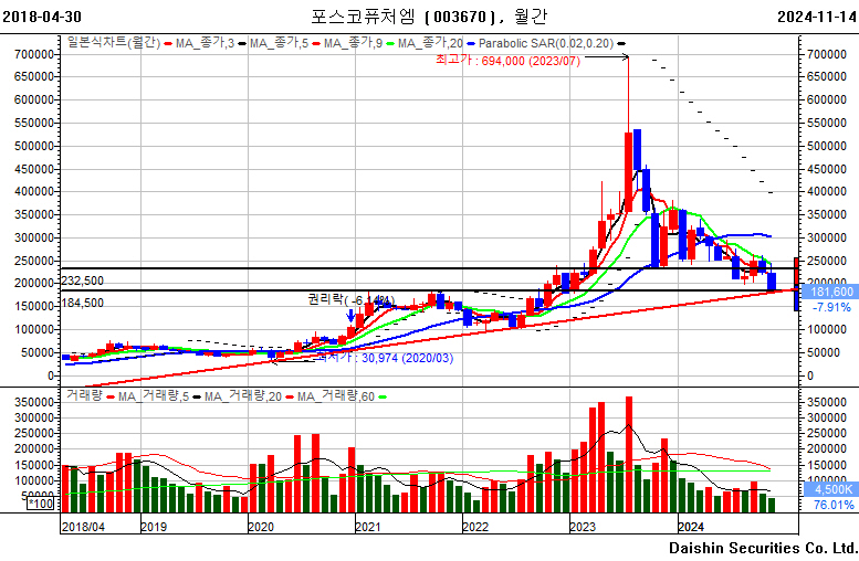 1. 포스코퓨쳐엠은 위의 그림과 같이 월봉상