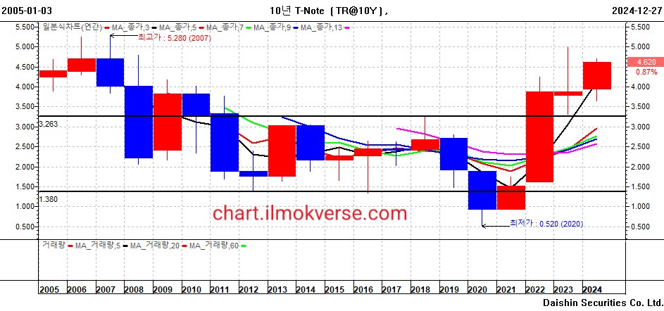 미국 국채 10년물은 4.8%가 단기 변곡점인데,