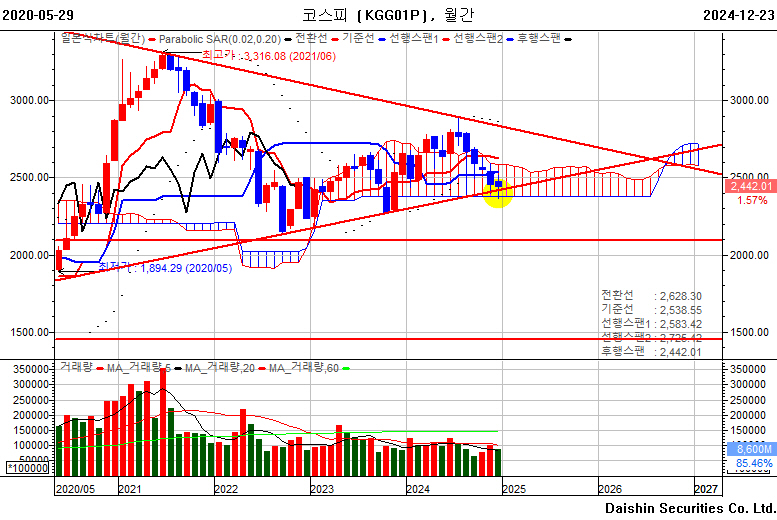 2387포인트가 월봉상 일목 구름대 하단이자 22년